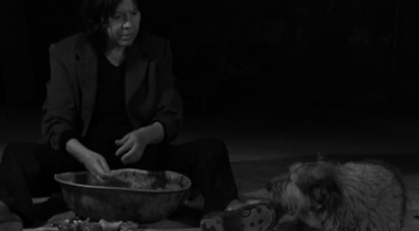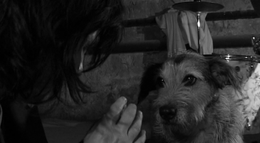A Tibeti halottaskönyv, Garaczi László Csodálatos vadállatok című színdarabja, Magyar Dezső A Levél című forgatókönyve, Tar Sándor Lassú teher című novellája, néhány Fellininek tulajdonított mondat és az alkotók improvizációi bakugrásos dramaturgiával kapaszkodnak össze. 2. KÉP A szülés, újraszületés, személyiségcsere, a hazugság mint a létfenntartás eszköze szöveg szinten kiemelkedő motívumok, ugyanakkor ok-okozati összefüggést, linearitást ne keressünk. A történetfoszlányok kuszaságát Gina kutya oldja fel azzal, hogy az előadás végén színre kerülő méretes marhanyelvet elfogyasztva, szimbolikusan felszámolja a nyelviséget. A megnevezett szereplők (Gábor, Dr. Magyar Dezső), a hozzájuk kapcsolódó magánéleti, szakmai referenciák és az előadás apropóját jelentő filmforgatókönyv nincsenek eléggé kontextusba helyezve és háttérinformációk hiányában a tartalmat és ívet nehéz összerakni.7 A kutya jelenléte, az előadóművészet hétköznapira hangolt minősége, a tér atmoszférája, az akusztikai hatások és az elhangzó szövegek viszont olyan erővel rezonálnak egymással, hogy fenntartják a figyelmet, pontosabban kitágítják azt. A darab Ózdon játszódik, ugyanúgy, mint a valóságban meghiúsult film története. Az egész előadás egy koncertfellépés próbája, amelyet Fellini fogadására rendeznek. Ebbe az alaptörténetbe ékelődnek be az egymáshoz lazán sem kapcsolódó szöveges vagy szöveg nélküli jelenetek. Ezek a jelenetek olyan motívumokat tartalmaznak, melyek az előadás egészében elszórva kiadnak egy asszociációláncot. A Dr. Magyar Dezsőt „alakító” Székely B. elmeséli, hogy a koncertre hívott Fellinivel érkezett egy pap, aki olyan hangosan imádkozott, hogy ő erre nyeríteni kezdett, rövidesen pedig egymást túlharsogó, imádkozó-nyerítő hangverseny alakult ki. A pap és Fellini végül megfutamodtak. Fellini futtában még odavetette neki, hogy: „Ne törődjön vele, Dr. Magyar Dezső. Nálunk Olaszországban van, aki az egész életét arra teszi fel, hogy ló legyen. Vagy kő. Vagy fa. És senki észre sem veszi. Bagatell.” A következő szöveges jelenetben Monori Gina kutyát tanítja arra, hogyan cselekedjen, ha újra kell születnie. 3. KÉP Nagyon vigyázzon, mert lehet, korábban ember volt, és később mégis kutya lesz újra. A Tibeti halottaskönyv újraszületéssel kapcsolatos mondatai, Gina elmélyült figyelme és a Fellini-történet szavai némán visszhangoznak a térben. Később a Tar Sándor-novella egy szív–két ember, kölcsönadott térdkalács, kölcsöntüdő, a másik embernek átadott fél vese motívumaival kiegészülve felhangosodnak a gondolati szekvenciák. Az egyik ember a másik ember testébe költözik, az egyik kapcsolat a másikba. Ez a réteg önéletrajzi: Monori volt férjét játssza a jelenlegi. Mit jelent Gina az anyaölben való születés és a kővé vált ember közötti tengelyen? Tekintete ember és állat lelki egységét testesíti meg egy olyan térben, ahol a falak érintetlenségükben egylényegűvé válnak az emberi arccal, hanggal, lélegzetvétellel. 4. KÉP Az alakváltások szimbolikája (ember, aki ló, fa és kő; férj, aki Dezső, de valójában Székely B.; kutya, aki ember; színész, aki ember; színház, ami valójában pince és pince, ami valójában színház) adja ki azt a rendszert, amely a szavak szintjén megjelenő történetvezetésből hiányzik.