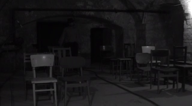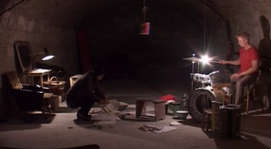 A Szentkirályi utca 4. szám alatti pincerendszer négy hatalmas teremből állt. 8A KÉP 8B KÉP Az egész terület 420 négyzetméter, ha levonjuk belőle az átjárókat, akkor a termek külön 70 és 90 négyzetméteresek voltak. Minden teremnek volt egy-egy nyílása a mellette és mögötte lévő termekhez is. Nem színház számára épített, tervezett, berendezett helyszín, viszont a talált tér kifejezés sem pontos. A pince mint helyszín Monori és Székely B. művészetfilozófiájának médiuma, nem technikai értelemben vett teátrális tér. Az előadás abban a dimenzióban történik meg, amit a tér megnyit. A levél című előadás egy helyszínen játszódott, a pincelejárattól balra eső, hátsó teremben. A játéktér két oldalán három, hatalmas hasadék tátong a falban, csak a pinceablakokon keresztül beszűrődő természetes fény dereng az átjárókon túli sötétségben, az összes többi teremben le van oltva a villany. A megvilágítás ezen kontrasztja némely esetben tágítja a jelenetek érzékelési horizontját, olyan módon, hogy a kontúr nélküli sötétség kissé hátborzongató, de mindenképpen hiányérzetet kelt. Ez a hiány, a feneketlen lyuk a térben vonzza a tekintetet, a megfejthetetlenség, a titok számára nyit kaput, melyen keresztül a darabban elhangzó történetfoszlányok szabadon járnak, kelnek. A párkapcsolati dimenzió, mely Monori és Székely B. párbeszédes jeleneteiben, az állathirdetések felolvasásakor vagy a forgatókönyv papírlapjainak rendezgetésekor megnyílik, az alá-fölérendeltségi viszonyt csavarja ki azzal, ahogyan a vitatkozó vagy a vitából kilépő fél eltűnik a sötétségben. Hiába erősebb valaki a másiknál, ha úgyis szakadékba lép, ami jelen esetben a falak közötti feketeség és a fényben úszó egyedüllét egyaránt. 9. KÉP A kontrasztok használata nem csak a színészi testben és hangvételben vagy a fény–árnyék-játékban jelenik meg. A dobfelszerelés, a keleties lampion meglepő tárgyak ebben a térben, de nem hivalkodóan. A barna, szürke, vajszínű, viseltes bútordarabok, a hokedlik, a kopott fotel, a kisasztal, rajta a fonott kosár rendezetlenül, a fémesen csillogó és kimondottan jó állapotú dobfelszereléssel szemben helyezkednek el. Közöttük kislavór játékállatokkal, például lovacska, tini nindzsa teknőc az újraszületés-, és szétszórt papírlapok a forgatókönyv-jelenetekből. Rengeteg az ülőalkalmatosság, több mint a játszók. A tárgyi világ eredeti rendeltetése okán otthonos hangulatot kelt, miközben állapotuk elhagyatottság érzetét hozza be.22 A dobfelszerelés sok darabból álló egysége és a bútorok sok darabból álló káosza hatásukban ellentmondást keltenek, amit a koncert-nézőtér szabályosan berendezett, üres székei felerősítenek.23