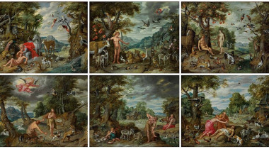 Az 1600-as években Ádám és Éva történetét bemutató festmények egy része már nem az emberpárra, hanem az édeni tájra és az ott élő állatokra fókuszál. A bibliai történet megjelenített mozzanata valahol a háttérben zajlik, míg az előteret a minden kontinensről kiszemezgetett állat és növény sereg uralja. Másik, újonnan népszerűvé vált téma a barokk korban Ábel siratása. A másodszülött fiú a földön, vagy szülei ölében fekszik, Ádám és Éva pedig életükben először szembesülnek egy ember halálával. Kiváló példa ezen témák bemutatására a flamand festőművész, Ifj. Jan Brueghel, 6 darab 66.6 x 84.5 centiméteres képből álló sorozata, amely elkészültét az 1600-as évek második felére tehetjük.23 10. KÉP