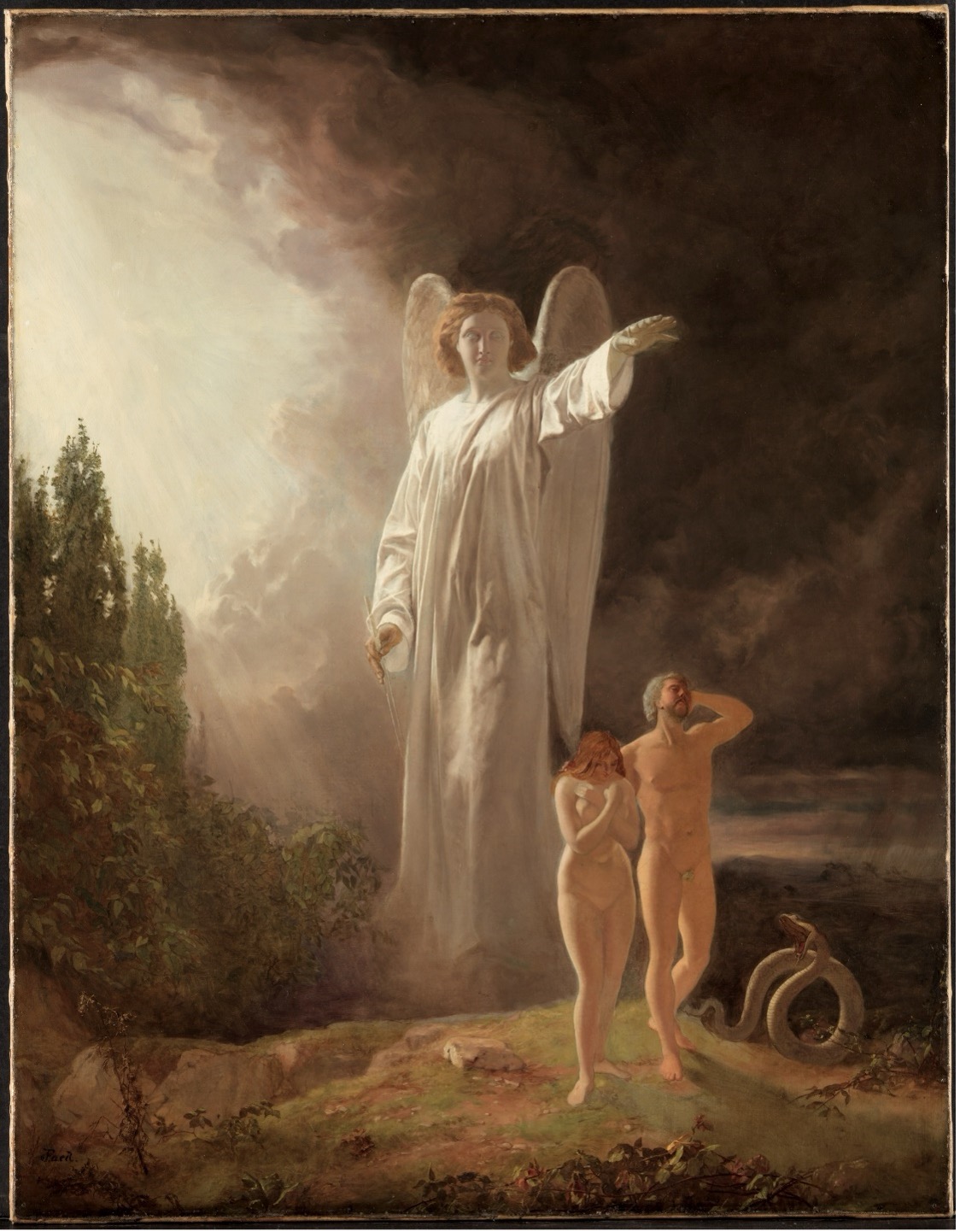 A Cleveland Museumban található 91.3 x 70.7 centiméteres képet az 1880-as évekre datálják.26 Az előtérben láthatjuk, ahogy Ádám jobb kezével átkarolja Évát, míg a baljával fejéhez kap, mint aki rossz álomból ébred. Éva a földet nézve, karjaival mellkasát takarva távolodik eddigi otthonuktól. Ádám ágyéka előtt egy levél van, párjáé előtt azonban semmi sincs. Testük anatómialiga pontos, de egy olyan testalkatot képvisel mindkét alak, amely a Viktoriánus korban az ideál volt. Éva keblei teltek, ugyanez igaz csípőjére is, de dereka keskeny, így alakja homokóráéhoz hasonlít. Kezei és lábai kicsik és kecsesek. Ádám átlagos testalkatú, de annak is inkábba karcsúbb oldalán helyezkedik el és izmai nem kifejezetten hangsúlyosak.27 Érdekes azonban, hogy ősz hajjal van ábrázolva, valamint rövid bajusszal és szakállal. Éva haja pedig csak lapockája aljáig ér, pedig legtöbbször derekáig, de van, hogy egészen csípőjéig lelóg sűrű hajkoronája. A kép jobb sarkában egy óriási kígyó látható, amint felágaskodva, száját kitátva fordul a pár felé.