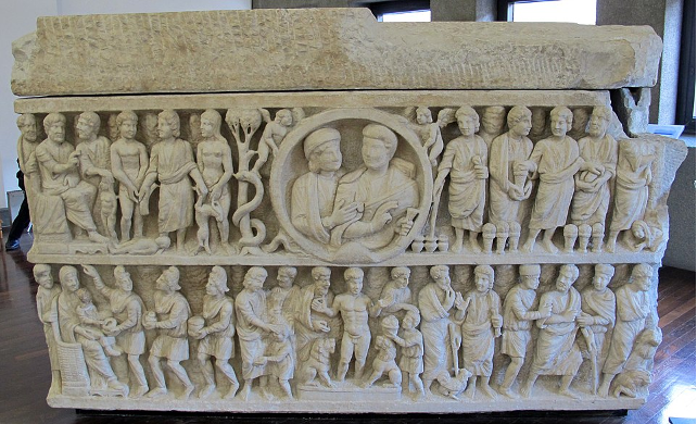 - 6: Museivaticani.va, hozzáférés: 2025.08.12., https://www.museivaticani.va/content/museivaticani/en/collezioni/musei/museo-pio-cristiano/sarcofagi-_a-doppio-registro/sarcofago-_dogmatico.html.