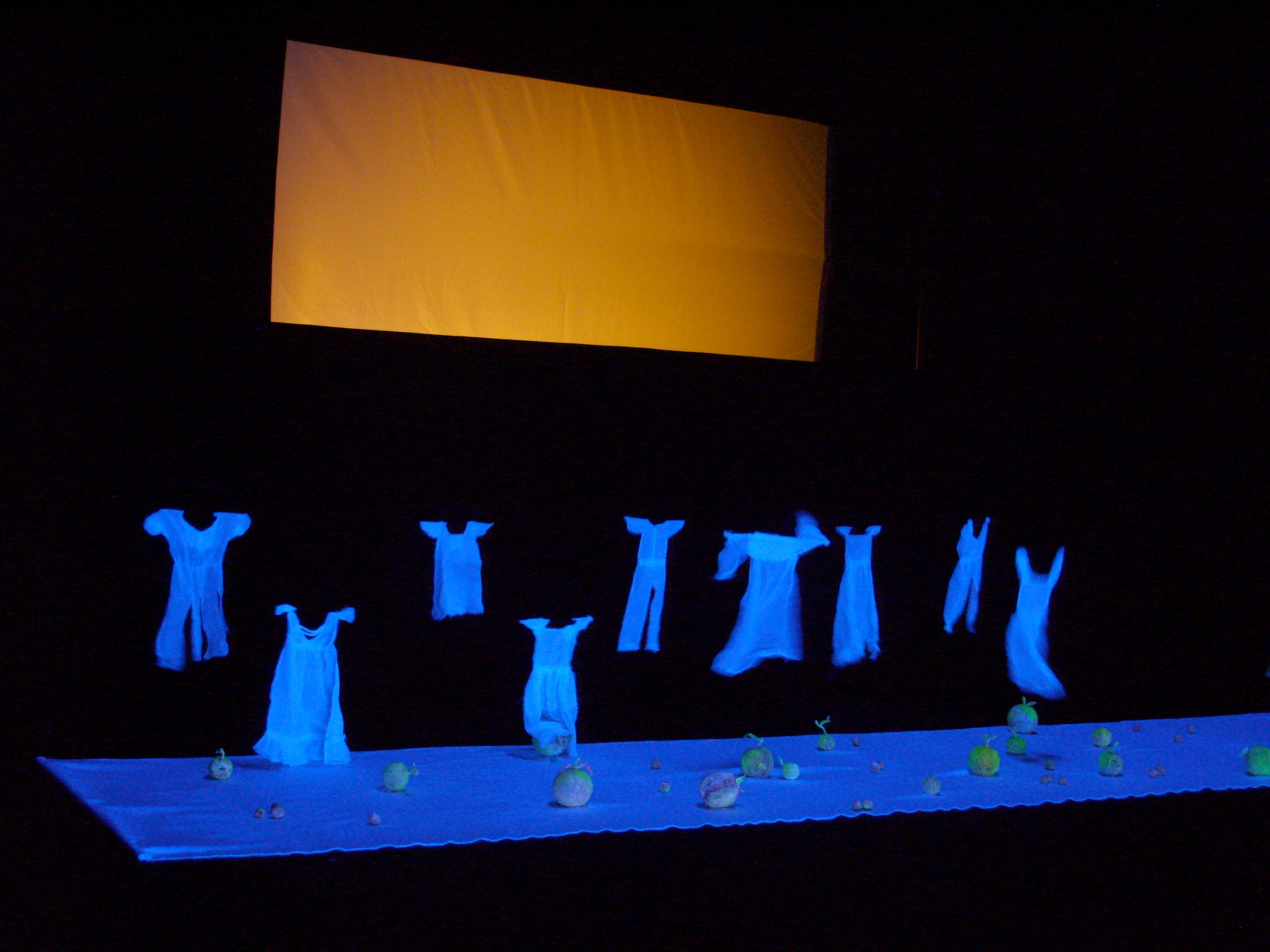 „Az előadás újszerű a román színjátszás történetében, nemcsak a szövegnélkülisége miatt, hanem azon animációs technikák használata miatt is, amelyek kevésbé következetes és összefüggő módon tűnnek fel más színházi produkcióban”17 – nyilatkozta Gavril Cadariu egy sajtótájékoztatón. Ezt az újszerűséget hangsúlyozta Halmágyi Éva, az előadás egyik színésze is, kiemelve, hogy a nézők és a színházi szakemberek befogadása eltérő volt, de minden visszajelzés a nem megszokott színházi formákat emelte ki az előadás erényeként.18 Halmágyi az előadás létrejöttének körülményeiről is részletesen beszámol: kísérletezési fázissal indult a próbafolyamat, a rendező az első alkalmakon azt kérte tőlük, hogy hozzanak ötleteket és jeleneteket. Miután egy ideig így zajlott a munka, a rendező egyszer úgy ment be próbára, hogy megvan az előadás koncepciója és a műhely már dolgozik a díszletelemek kivitelezésén. A tárgyak térben való mozgásának kitalálásában azonban a színészek is részt vállaltak, a rendezővel közösen kísérletezték ki, mi hogyan mozogjon és azt milyen technikával lehet kivitelezni. Halmágyi szerint a legnagyobb technikai és szervezési kihívásokat a próbafolyamat során az előadás damilrendszerének a működtetése jelentette. Kihasználták a damil sajátosságait, hogy műanyagból készül és megőrzi a feltekerés formáját, tehát ha letekerik az előadás során, az rugószerűen visszaugrik. Ezeket a damilokat a színpad takarásaiban súlyozták le, kis fapálcákra rögzítve. Minden pálcika más színű, UV-fényben világító festéket kapott, hogy a sötétben is egyértelmű legyen, melyik damil melyik elemhez tartozik: a zöld a kalapokhoz, a rózsaszín a „gyerekekhez” kapcsolódott. Ezen belül további jelölések segítették a sorrendet: például attól függően, hogy a pálcika melyik fele volt befestve, lehetett tudni, hogy az adott damil az előadás korábbi vagy későbbi szakaszában kerül használatba. Kiemelt figyelmet kellett fordítani arra, hogy a sötétben senki ne rúgja fel a súlyokat, amelyek alatt a pálcikák el voltak helyezve, mert ha egy elmozdult, a pálca könnyen „beugorhatott” a színpad közepére. Ugyanilyen fontos volt az is, hogy a damilok ne akadjanak össze: ha túl lazák voltak, könnyen összegubancolódtak. Mivel az előadásban „gyerekek” is ugráltak a színpadon (a ruhaszárító jelenetben), különösen ügyelni kellett arra, hogy se a színészek, se a damilok ne zavarják egymást, tehát távolságokat kellett tartani. A mozgás szigorúan sávokra volt osztva, a rendszert Halmágyi egy több sávos autópályához hasonlította, amelyen például a kalapok „közlekedtek.” Minden sávhoz két színész tartozott: egyikük a sáv egyik, másikuk a másik oldalán dolgozott. Két kézzel kellett egyszerre irányítani a mozgást, de többször előfordult, hogy a harmadik „segédeszköz” a száj volt: az előadás adott pontján például Halmágyinak a szájával kellett meghúznia a damilt, hogy a megfelelő pillanatban vissza tudja engedni.19